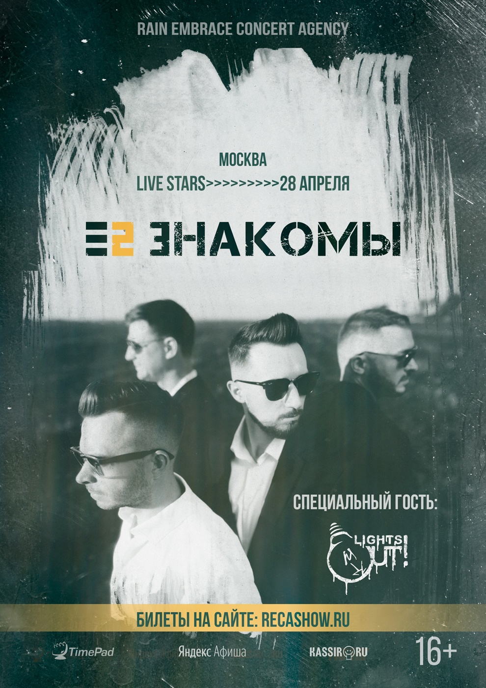 Большая двухчасовая программа, состоящая из лучших номеров, вошедших в трилогию "ПЕРЕЗАГРУЗКА" и новые хиты последнего времени! Громкий плотный звук, потрясающий свет, уникальное шоу, специальные гости из дружественных коллективов и, разумеется, всё это приправлено фирменным нервом и глубокими эмоциями от Е2 ЗНАКОМЫХ.